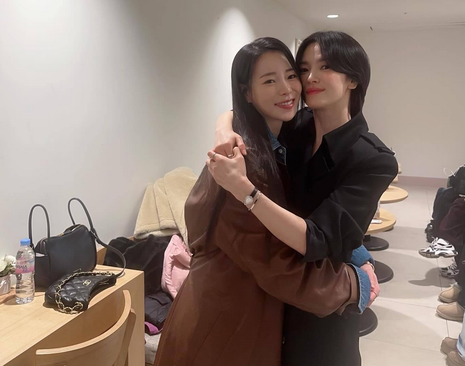 曾经出演《黑暗荣耀》“妍珍”角色的林智妍,在她自己的ins账号上晒出了她和宋慧乔一起相聚的合照。在照片中可以看到,宋慧乔穿着黑色的风衣搭配宽松牛仔裤,留着中分短发,看起来十分酷飒。林智妍穿着棕色风衣,看起来还是那么精致。宋慧乔抱着林智妍,林智妍则是搂着宋慧乔的腰,两人脸贴脸合照,笑得十分开心,看起来也十分亲密!