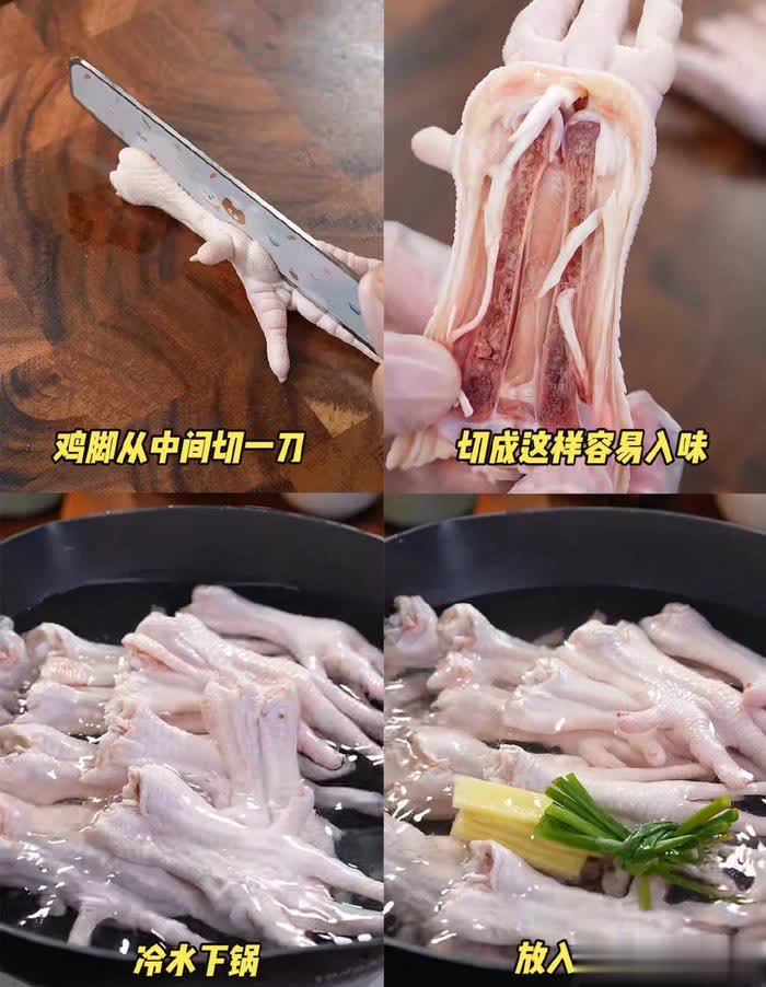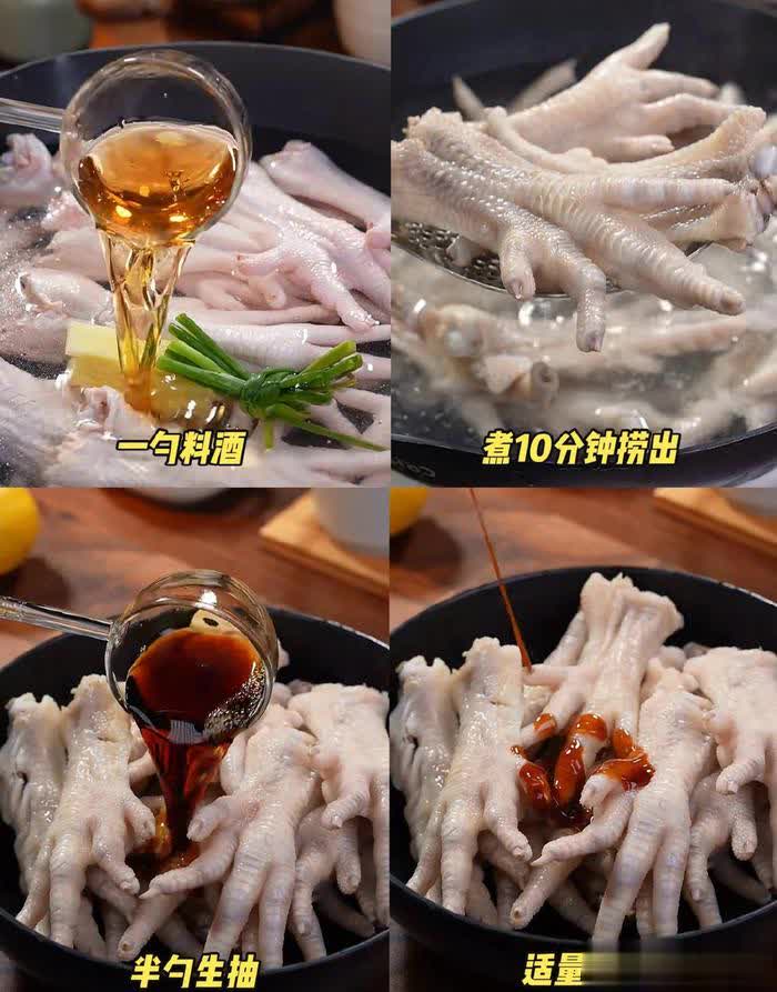 1.首先,咱们得准备一些新鲜的鸡爪。洗干净后,从中间切一刀,这样烤的时候更容易入味。接着,把鸡爪放进锅里,加上料酒、葱段、姜片,煮个10分钟左右,捞出来过冷水洗净沥干水分。